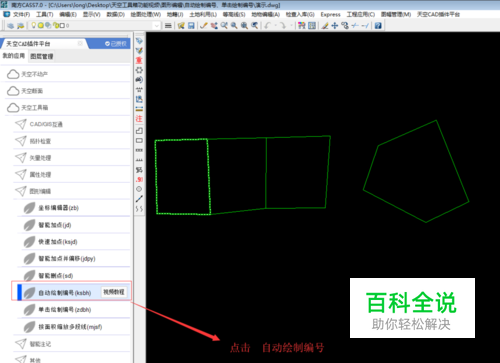 第二步 :自动绘制编号和单击绘制编号 在工作中,为了区分地块或标识地块,我们通常会在地块内部绘制一个编号,为了帮助大家更好的解决这个问题,我们开发了自动绘制编号和单击绘制编号功能,下面,我来为大家演示一下: 如果您已经绘制好闭合多段线且对多段线内部的编号顺序没有要求,您可以使用自动绘制编号功能,该功能可以对选中的闭合多段线进行自动编号且满足编号的唯一性。