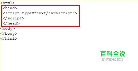 点击<html>标签后,输入<head>头标签,并在标签中定义<script>代码 <head> <script type="text/javascript"> </script> </head>