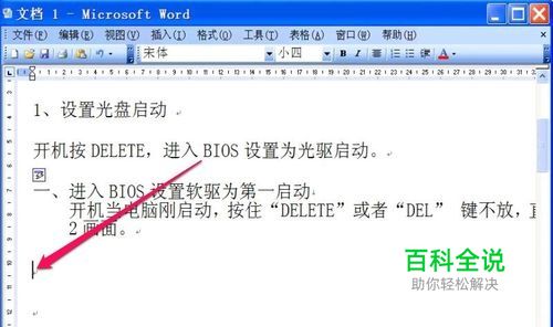 插入Word文档中图片显示完全方法与步骤: 1,在编辑一篇电脑系统安装教程时,需要在文字中插入图片,如下图,需在箭头处插入。