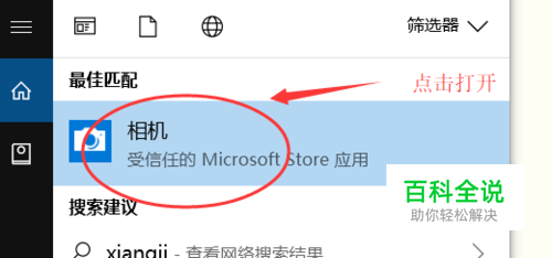 首先我们要知道怎么打开摄像头,不打开怎么知道到底是权限没有给,还是说驱动真的坏了呢?如果您使用的是win10系统,可以在右下角的输入框中输入“相机”来打开我们的相机,如下图所示: