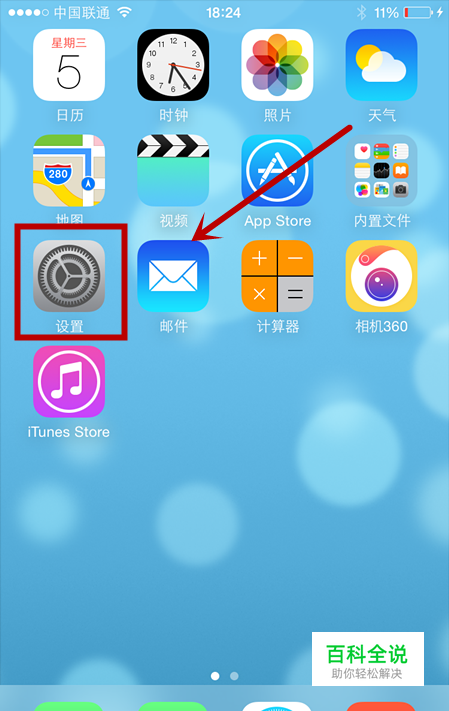 首先我们用HOME键使手机进入主屏幕找到设置这个按钮。