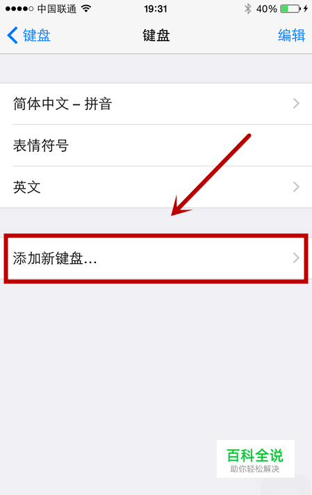点击设置进入设置菜单,执行通用>键盘,进入键盘菜单,我们在键盘菜单中不难发现有一个添加新键盘的按钮,点击进入。