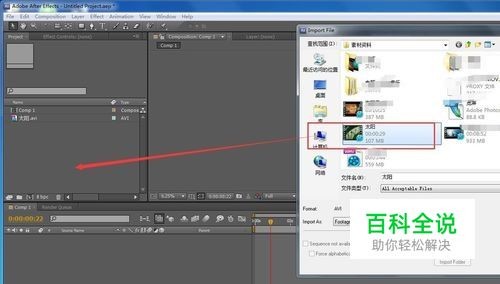 首先就是新建AE工程文件,工程文件的尺寸大小和剪辑的视频最好保持一致。然后导入要剪辑的视频。