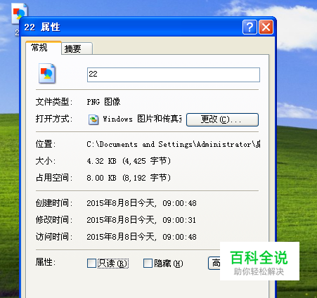 选择好之后点击保存,然后在桌面上点图片右击属性,就能看到您修改后的图片格式了,如图,小编成功的把PNG格式改成GIF格式。
