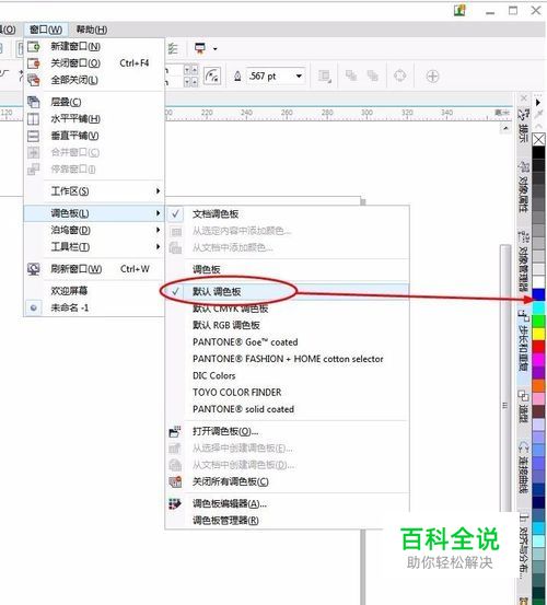 调色板一般默认是在页面右侧的,如果你的不小心关闭,打开方法窗口-调色板-默认调色板