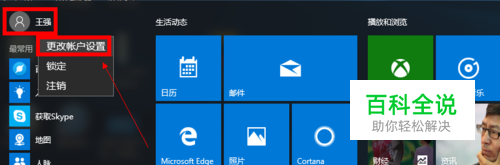 点击开始菜单,然后最上方找到当前登录的微软账户点击,选择更改账户设置。