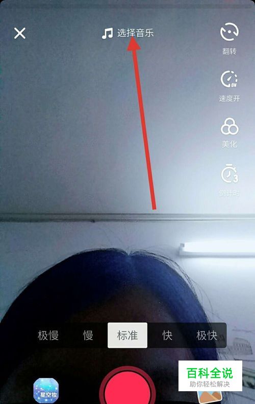 进入到拍摄页面,点击正上方的“选择音乐”,如下图所示: