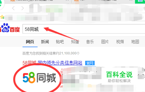 第一步:在搜索引擎里输入“58同城“,然后在下方的搜索结果里,点击58同城的官网,进入下一个页面。
