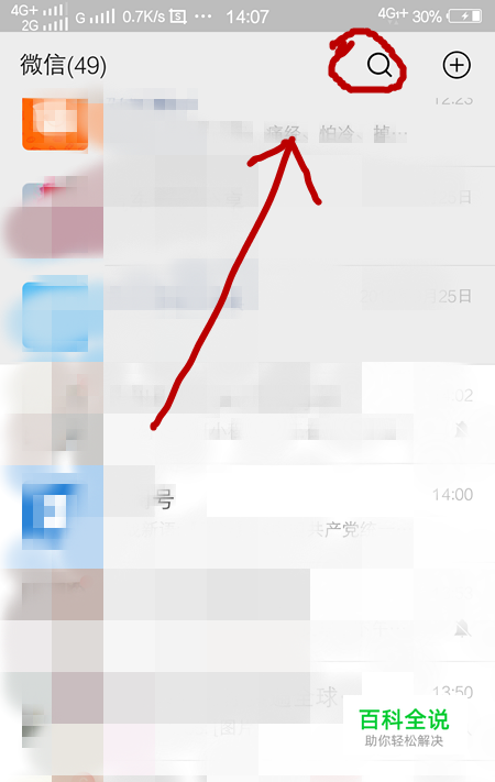 首先我们打开手机,登陆微信,来到微信的首页,然后我们点击上方的搜索,进入搜索界面。