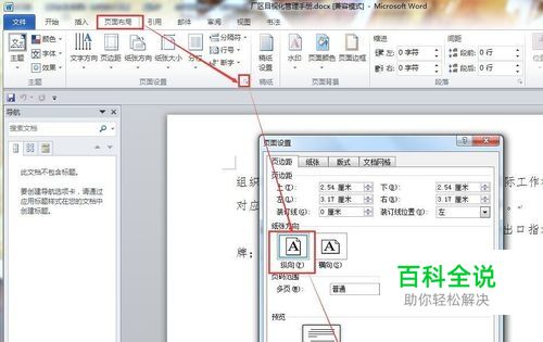 3、光标停留在第2页,选择“页面布局-纸张方向:横向-应用于:本节-确定”