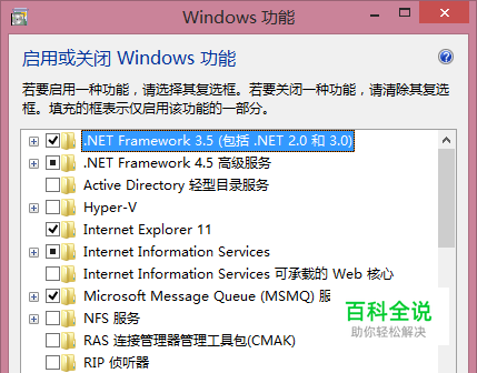 打开程序和功能,对话框左边有“启用或关闭windows功能”按钮