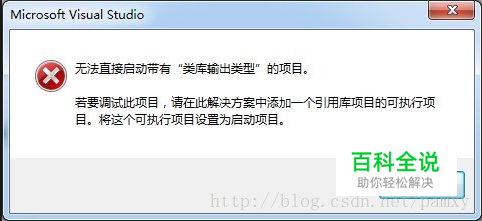 无法直接启动带有“类库输出类型”的项目若要调试此项目,请在此解决方案中添加一个引用库项目的可执行项目。将这个可执行项目设置为启动项目!