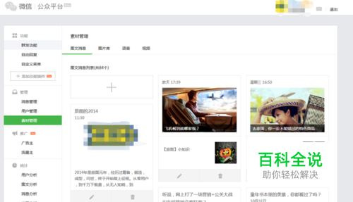 打开微信平台,点击素材管理,能看到里面之前编辑好的文章。