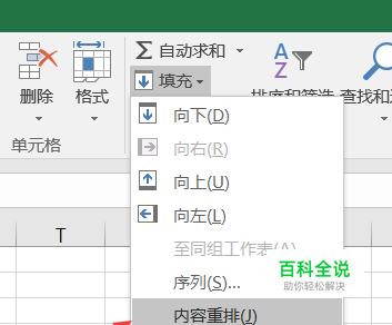 接下来,我们点击开始下的排序和筛选,从中找到内容重排,我们可以发现数字全部收集在上面的单元格中。