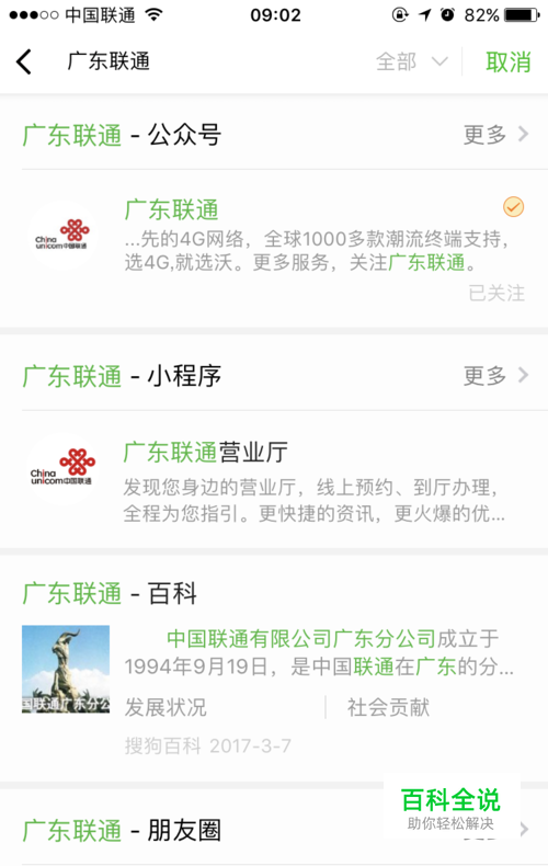 找到广东联通并关注