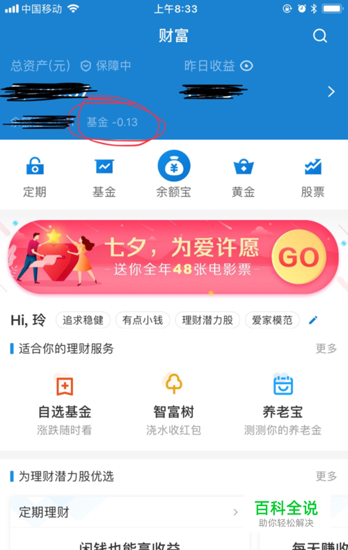 在“财富”页面的最上面,找到显示基金收入的那一栏,点击进入。