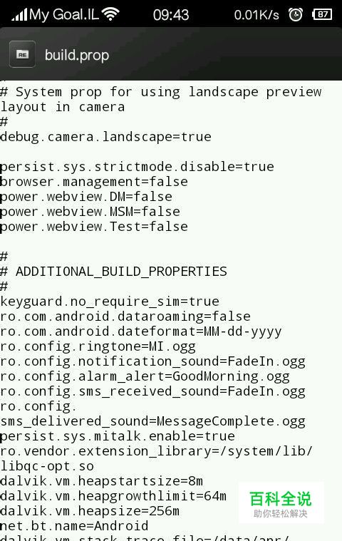 然后用文本编辑器的方式打开!滑动到最下面的一行,换行,然后加入下面这段代码! qemu.hw.mainkeys=0