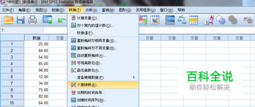录好数据之后,点击转换,出现一个下啦窗口,在上面找到个案排至,点击之后会弹出一个窗口。