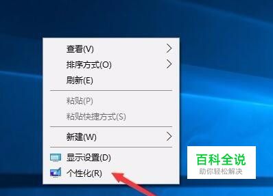在Windows10系统桌面点击右键,然后在弹出菜单中选择“个性化”菜单项