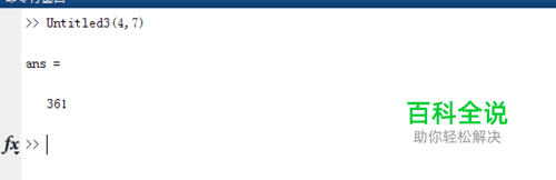 函数文件保存后,我们可以在命令行窗口中输入Untitled3(4,7),即可求得函数f(4,7)的结果,程序运行的结果如图: