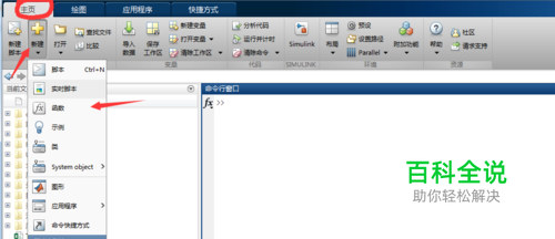 启动matlab,并新建一个函数,具体的操作流程【主页】-【新建】-【函数】,如图所示;现在就已经打开函数文件,可以编写自己的函数了