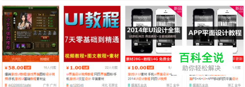 然后我们进去看一下哪一个更适合我们的要求!最终我们可以确定【爆销游戏UI教程|游戏界面图标设计视频|手机游戏UI基础教程素材全】这一款是我们需要的,同时看一下宝贝介绍与评价!