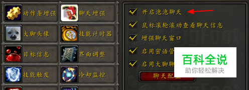 首先要说的是聊天方面的设置,这个可以在界面增强中的聊天增强里进行设置,特别是开启聊天泡泡功能,开启之后会以聊天泡泡的形式显示聊天信息,很醒目
