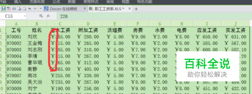 再按enter键,数据前面就会出现人民币符号,旁边的表格是没有设置格式的。
