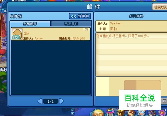 当你的物品卖出去以后就会发一封回执给你,如果在你寄售的时间没有卖出,也会退回到邮件里