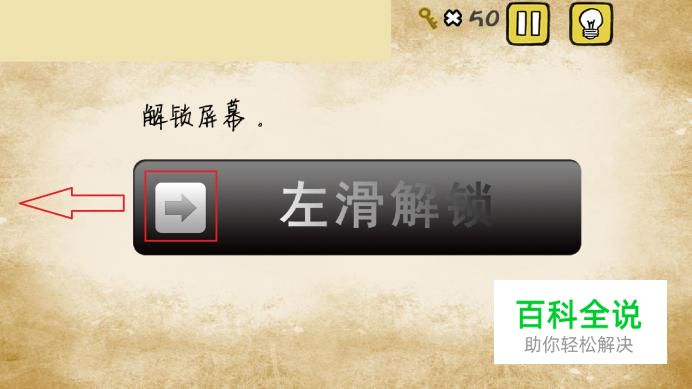 进入第一关解锁屏幕,我们根据要求向左滑动解锁屏幕,我们就将解锁将按住向左滑动就好了,这一关就过了。