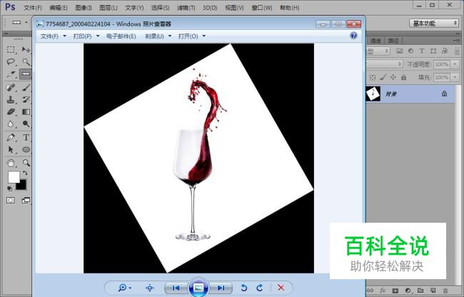 点击确定之后,我们会发现整个画布都旋转了,并且画布扩大,多余的部分被黑色填充(也就是填充了背景色)。