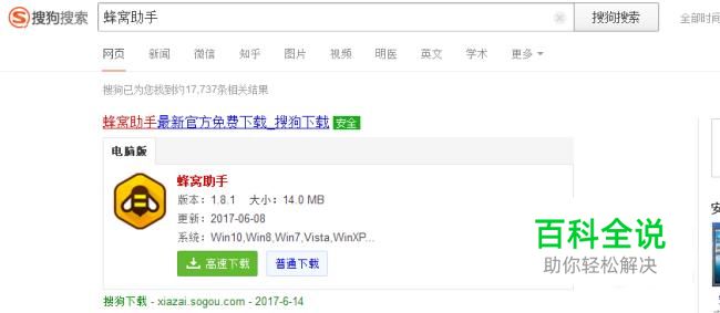 首先打开搜狗输浏览器,在搜索页输入:蜂窝助手,然后点击下载蜂窝助手。