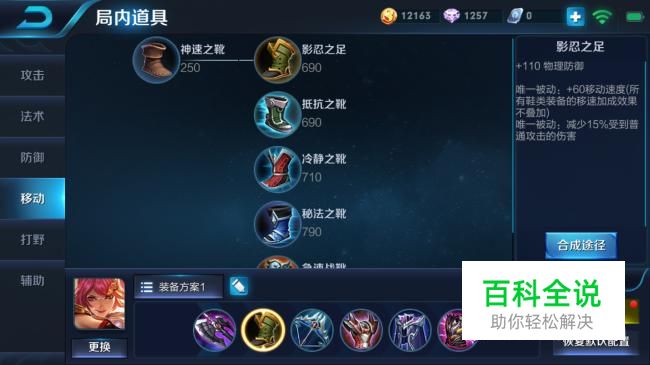影忍之足,增加110物防,减少15%的普通攻击伤害,能够保证生存续航。