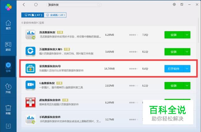 首先可以利用电脑管家的软件市场或者到网上直接下载一个数据恢复软件,比如“易我数据恢复向导”。