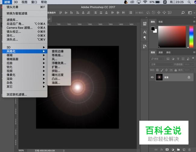 选择“滤镜-扭曲-极坐标”,方式为“平面坐标到极坐标”,点击“确定”