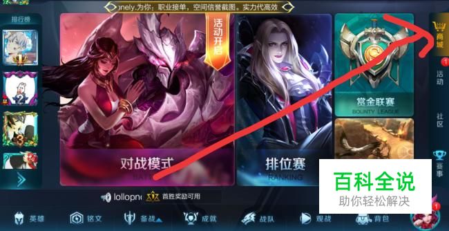 首先我们了解一下钻石购买英雄,但是只能购买几款英雄,不能购买所有的英雄。进入游戏主界面,在右上方打开商城。如图
