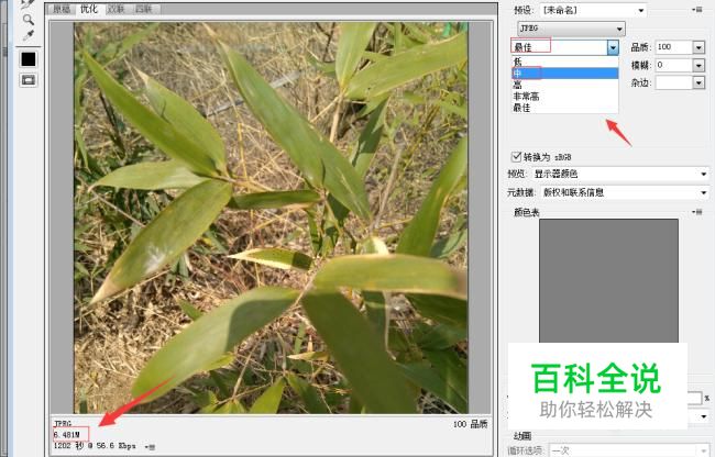我们通过改变图片的品质来实现把图片所占内存变小。我们可以对比一下图片存储为“最佳”和“中”的时候,占内存的大小。