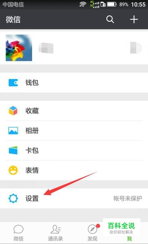 首先我们先将微信的版本更新到6.5.8版本,版本更新完成之后打开微信,然后进入到“我”的控制面板,在这里我们会看到有一个“设置”选项卡,单击该选项。