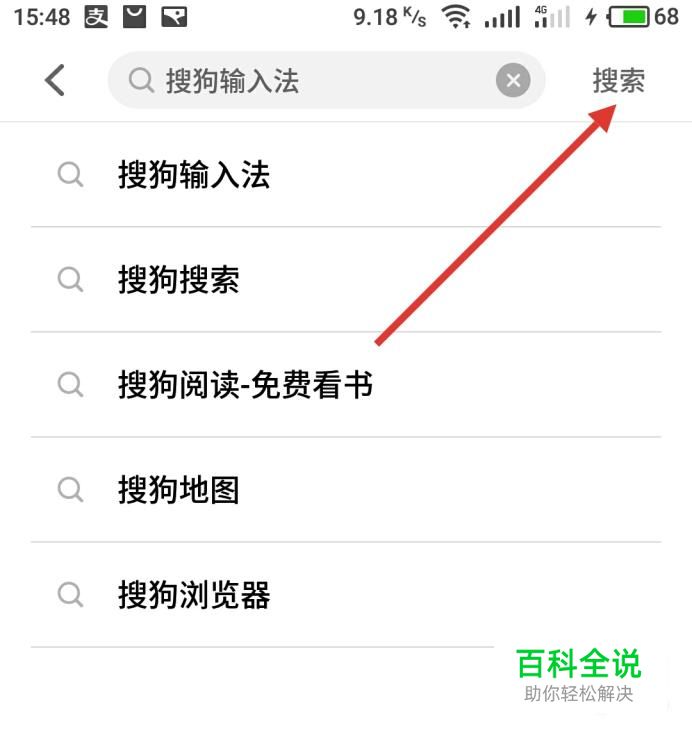 打开手机,点击应用商店,在打开页面,输入搜狗输入法,点击搜索。