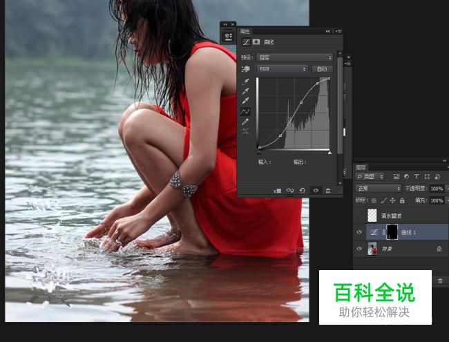 使用曲线调整层,再次调整画面的对比程度。(注:以当前隐藏的选区,创建的调整层)