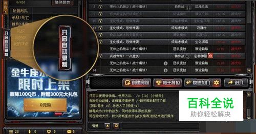 登陆CF游戏,在未加入游戏时,界面左边边框会有一个“开启自动录制”,点击即可录制。
