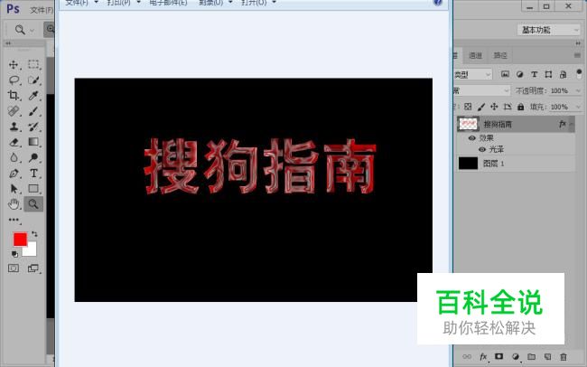 设置前景色为红色;按住Ctrl键,单击栅格化的文字图层调出选区;然后填充前景色。