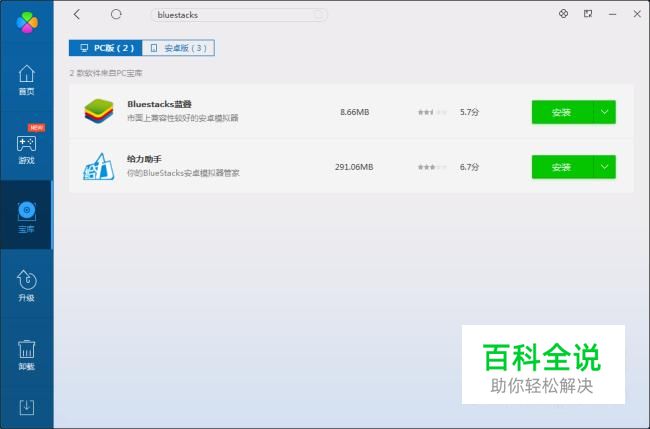 首先在你的软件应用商店里搜索“bluestacks”,并下载安装。