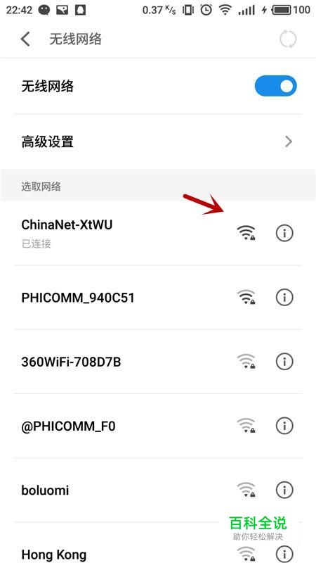 进入无线网络设置界面,点击想要查看密码的WIFI。