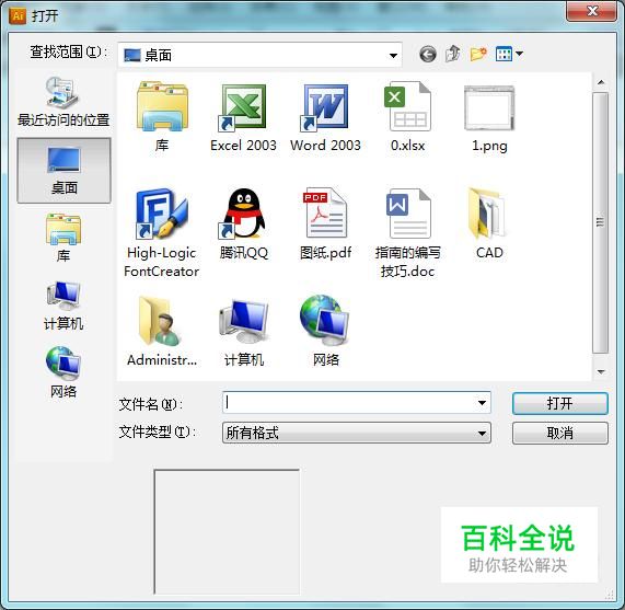 在该界面内按下Ctrl+O键,弹出选择文件对话框,在该对话框内找到我们刚刚使用AI导出的CAD文件,如图所示: