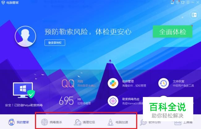 如果没有360卫士,电脑管家也是可以的,同样也是进行电脑查杀,清理垃圾等等。