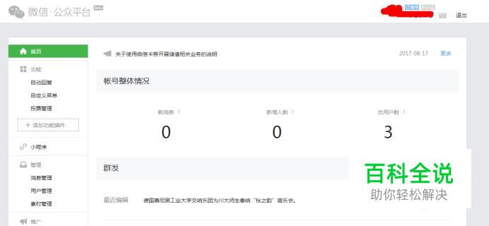 登陆微信公众号,进入公众号首页。