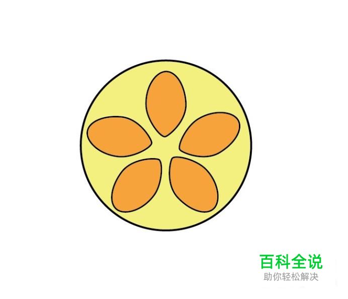 我们再次绘制橙子片上的瓣形形状,使用椭圆工具绘制椭圆形状。