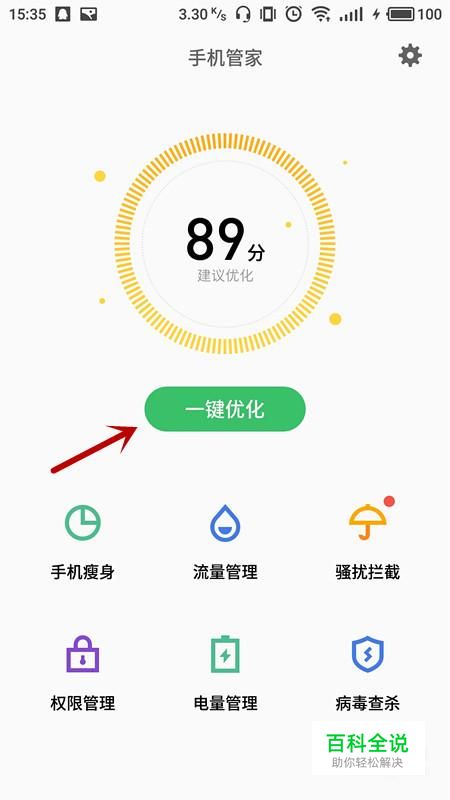进入手机管家界面,选择“一键优化”