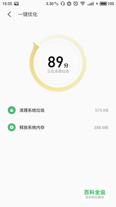 等待系统扫描清除手机中部分文件。